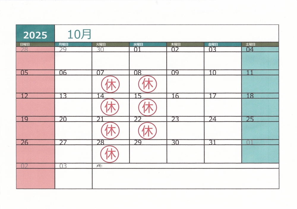 10月のお休み